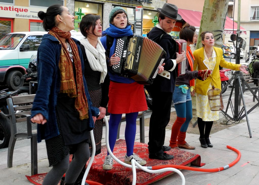 Ils sont nombreux et disparates, partis sur la route, décidés à partager des musiques, des histoires et surtout à faire la fête. Vingt-cinq artistes, instrumentistes et chanteuses, nous racontent leurs rêves, leurs joies et leur nostalgie. La Fanfare des Pavés et son choeur de femmes vous entrainent dans un voyage festif et poétique, de la Macédoine à l’Algérie en passant par les traditionnels Roms et les chants Ukrainien.